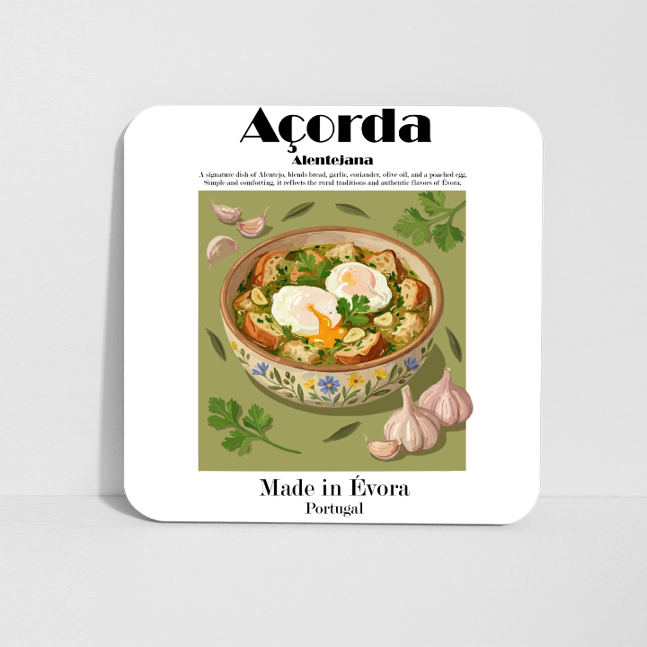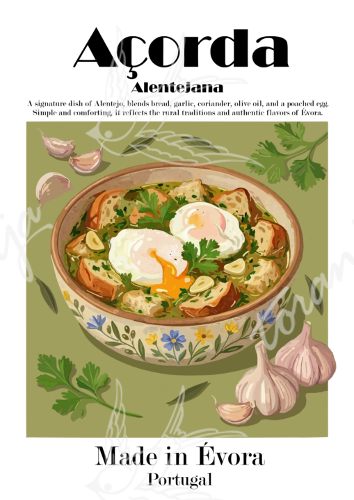 Prato tradicional do Alentejo, a açorda é feita com pão, alho, coentros, azeite e ovo escalfado. De origem humilde, reflete a simplicidade, o sabor e a identidade da cozinha alentejana. ... A traditional dish from Alentejo, açorda is made with bread, garlic, coriander, olive oil, and a poached egg. With humble origins, it reflects the simplicity, flavor, and identity of Alentejo cuisine.