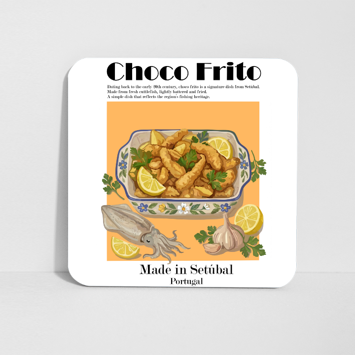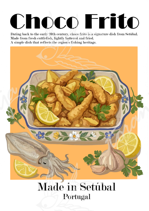 Especialidade emblemática de Setúbal, o choco frito é feito com choco fresco, panado e frito até ficar crocante. Com origem no início do século XX, reflete a forte tradição piscatória e os sabores autênticos da região. --- A signature dish from Setúbal, choco frito is made with fresh cuttlefish, lightly battered and fried until crispy. Dating back to the early 20th century, it reflects the region’s fishing heritage and authentic flavors.