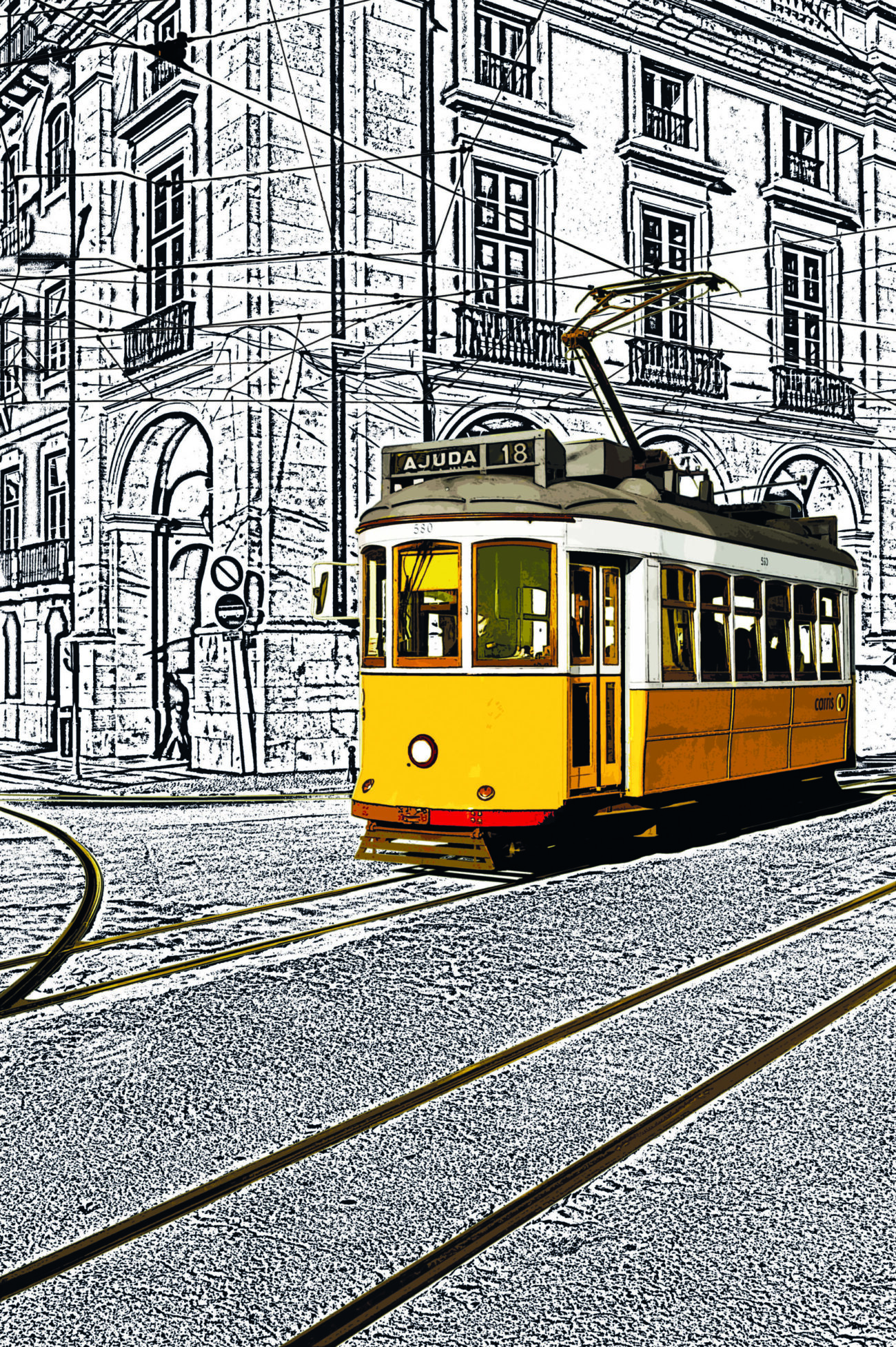 photography is the basic technique, the theme includes iconic elements of lisbon, with the application of digital processes to the original photographs with a POP aesthetic, tram 28 to the ajuda neighborhood