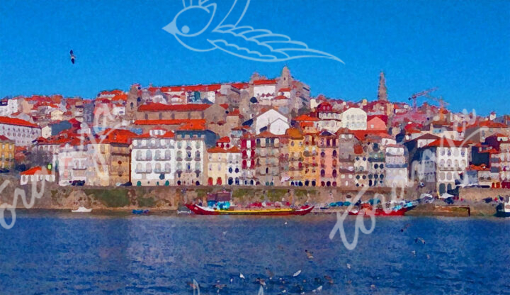 An immersive view of Porto from the Gaia riverside, where iconic architecture and the rhythm of the river come together in a contemporary composition. This digital artwork explores light, color, and texture to reinterpret the urban landscape with a modern, expressive perspective.