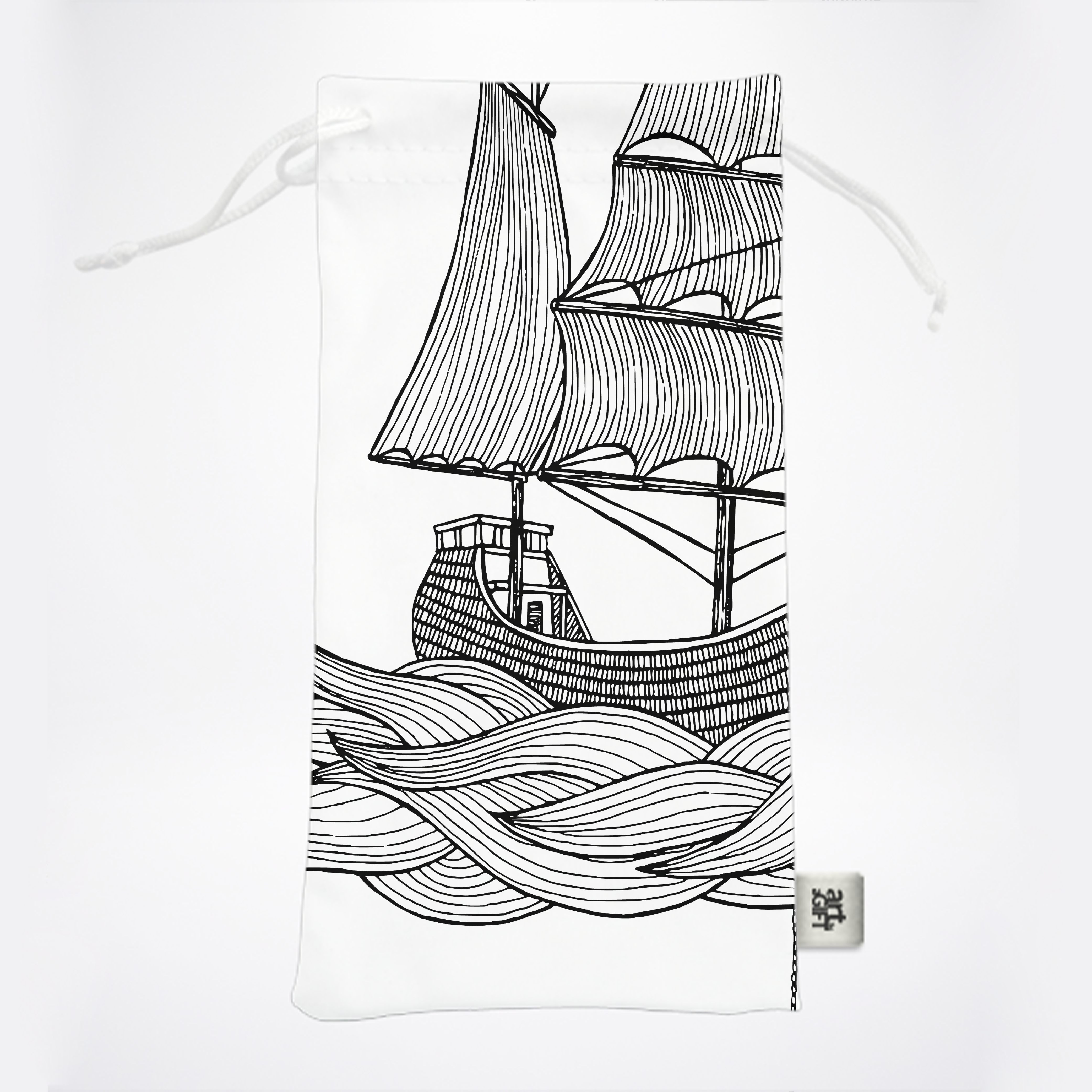 Black and white illustration of a ship.