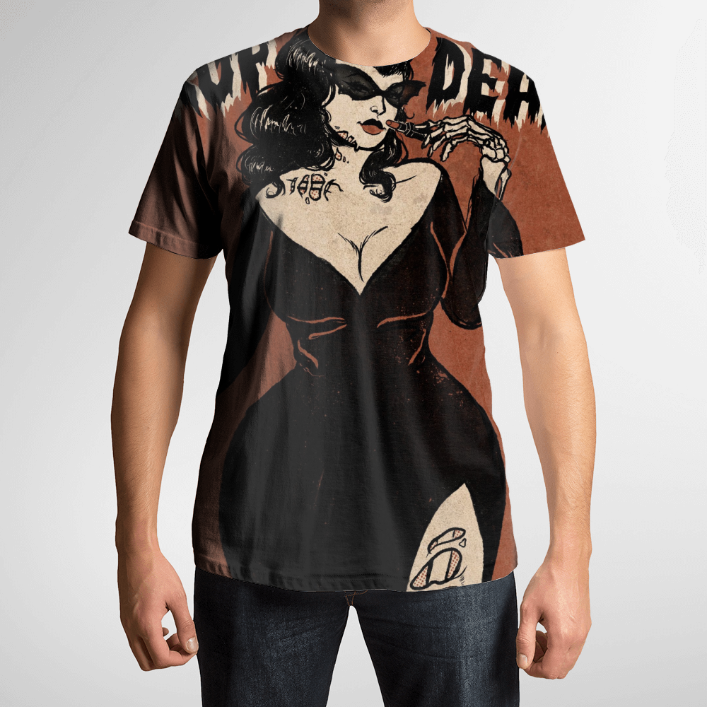 • Impressão é feita pelo processo de sublimação e ocupa toda a t-shirt;