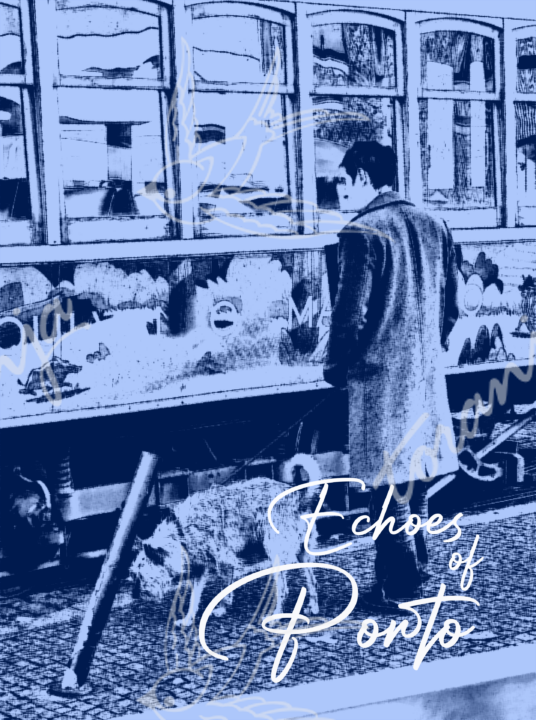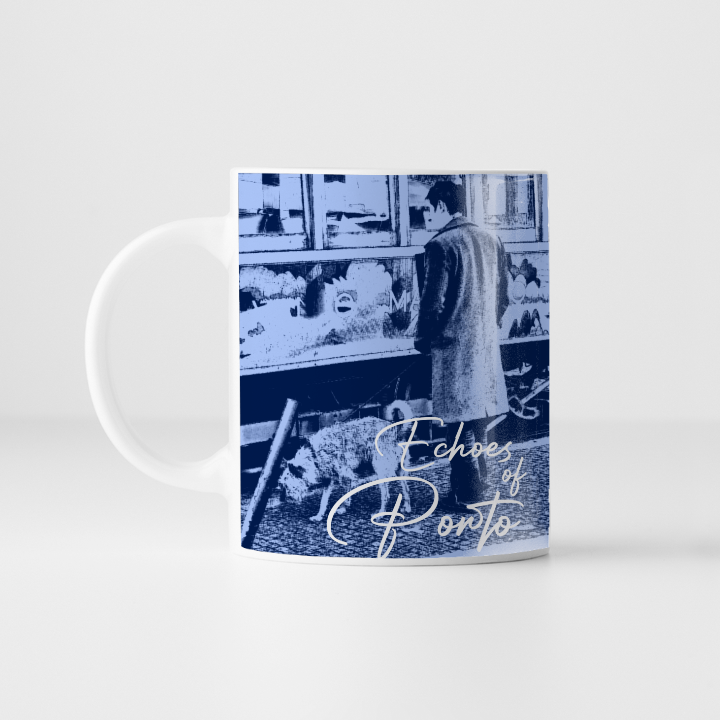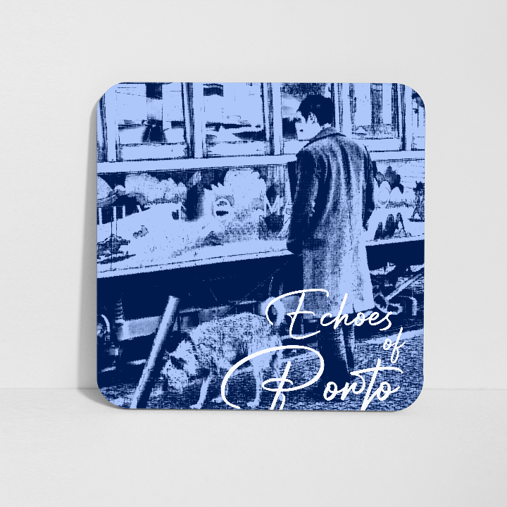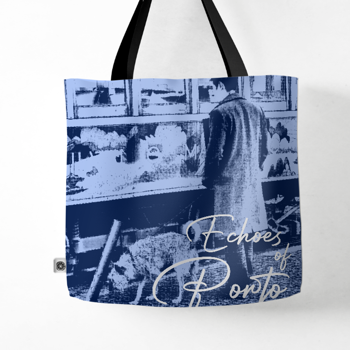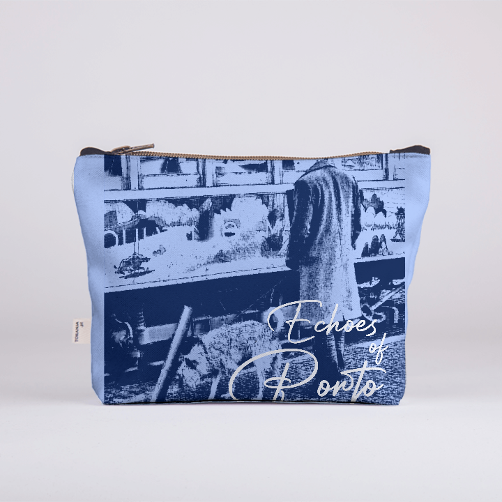 An iconic Porto scene in shades of blue and grey, where the tram meets a simple everyday moment. A calm and nostalgic design, perfect for taking home an authentic memory of the city.