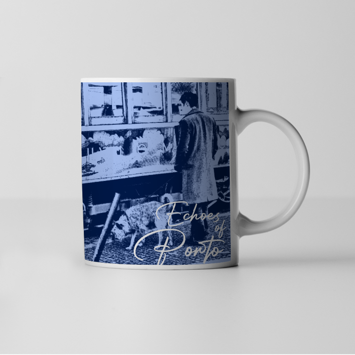 An iconic Porto scene in shades of blue and grey, where the tram meets a simple everyday moment. A calm and nostalgic design, perfect for taking home an authentic memory of the city.