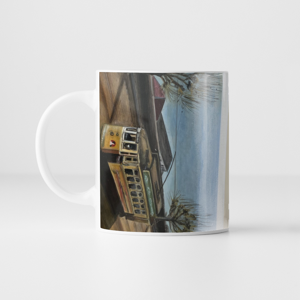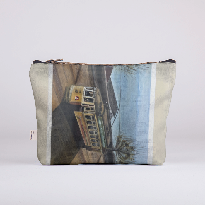 A pintura retrata a subida do electrico na Rua D Pedro V junto ao rio Douro