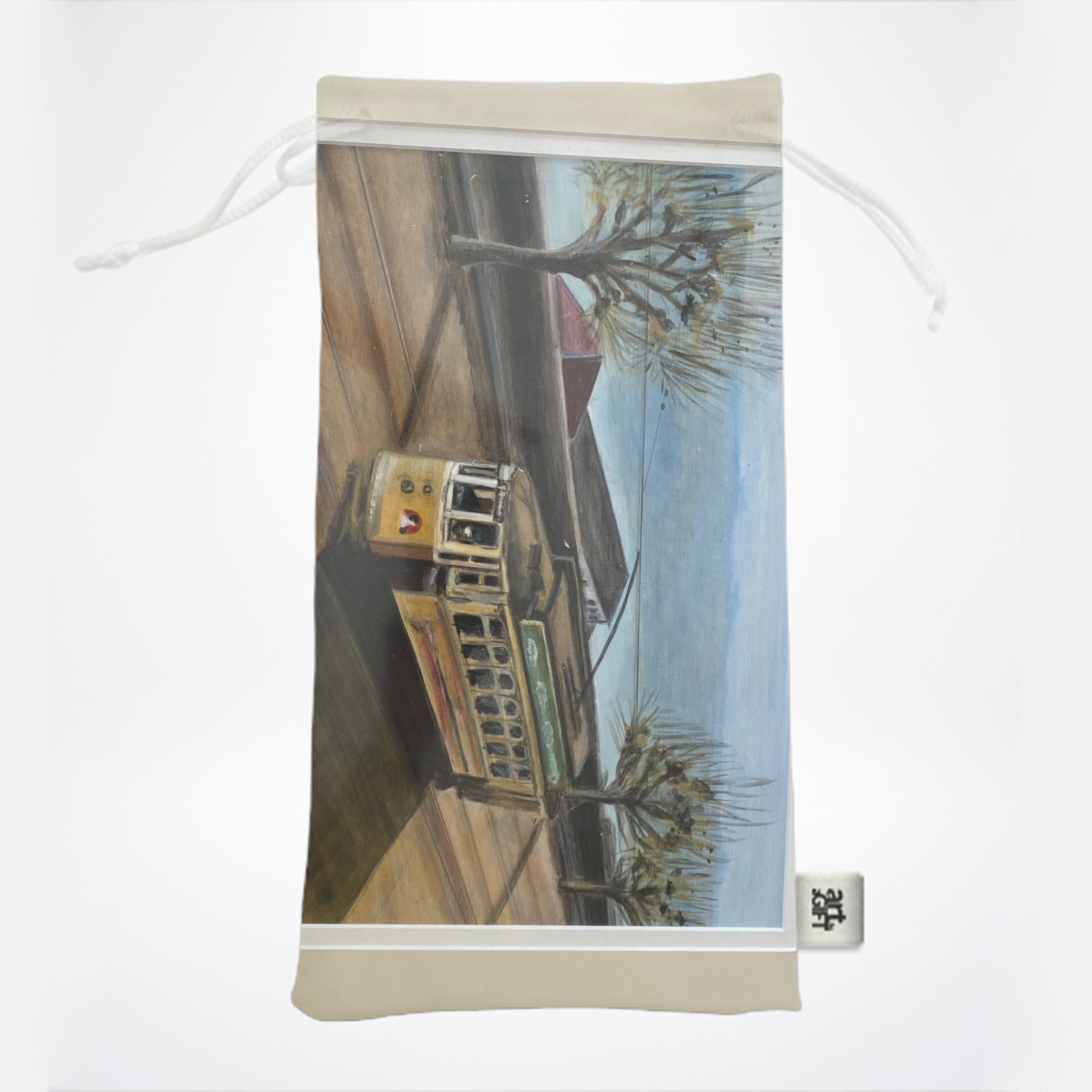 A pintura retrata a subida do electrico na Rua D Pedro V junto ao rio Douro