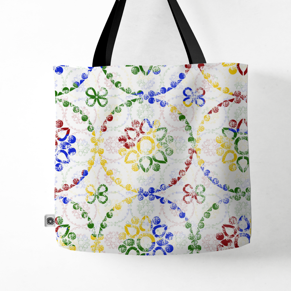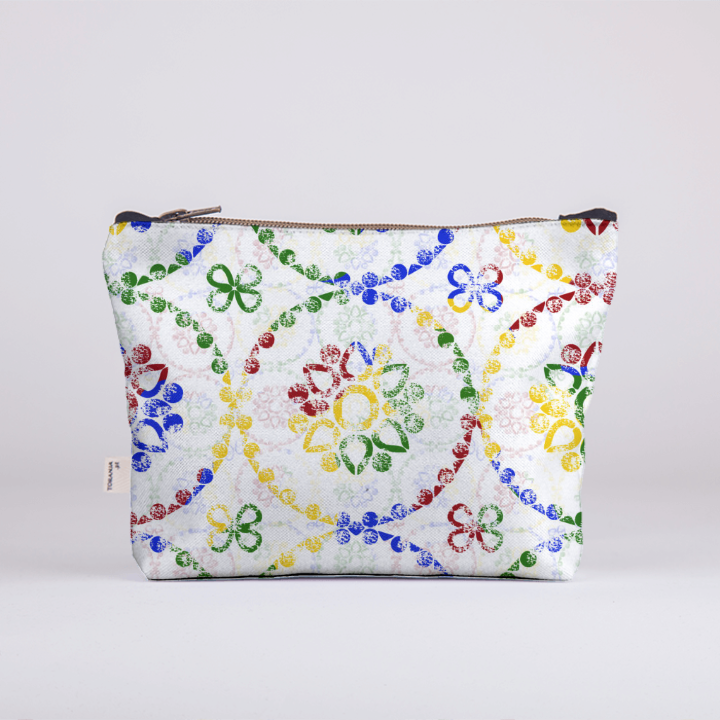 Uma composição vibrante inspirada na tradição dos azulejos portugueses, onde formas e cores se entrelaçam numa linguagem contemporânea. Este desenho celebra a herança cultural através de um olhar fresco e expressivo.