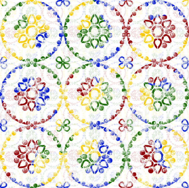 A vibrant composition inspired by traditional Portuguese tiles, where shapes and colors intertwine in a contemporary language. This artwork celebrates cultural heritage through a fresh and expressive perspective.