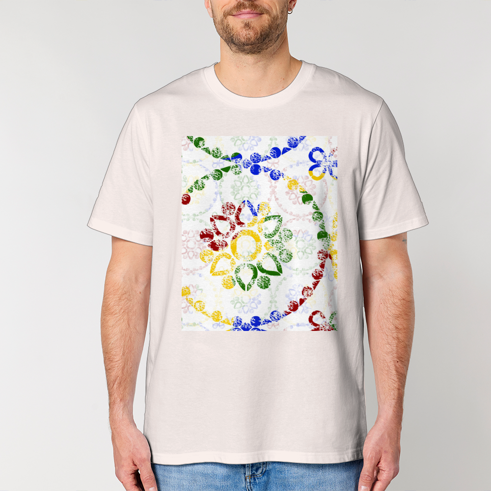 Uma composição vibrante inspirada na tradição dos azulejos portugueses, onde formas e cores se entrelaçam numa linguagem contemporânea. Este desenho celebra a herança cultural através de um olhar fresco e expressivo.