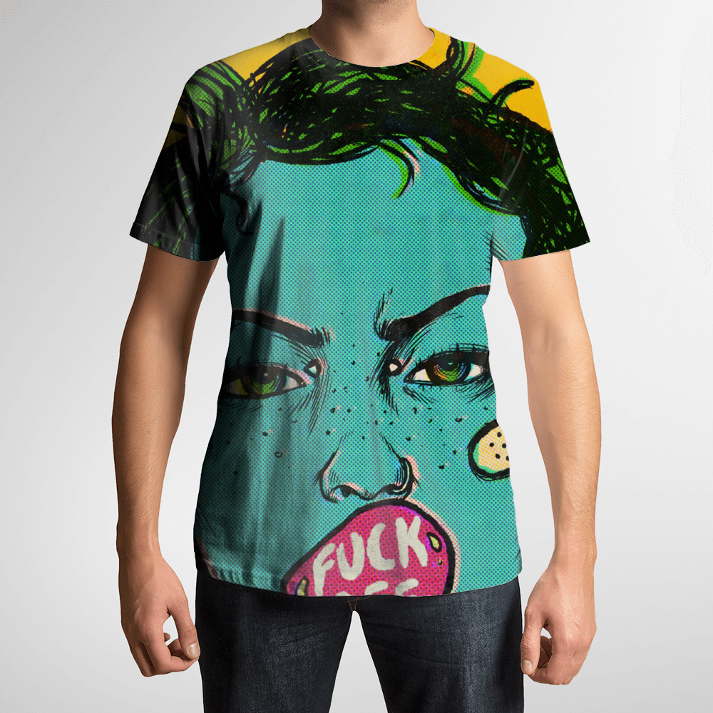 • Impressão é feita pelo processo de sublimação e ocupa toda a t-shirt;