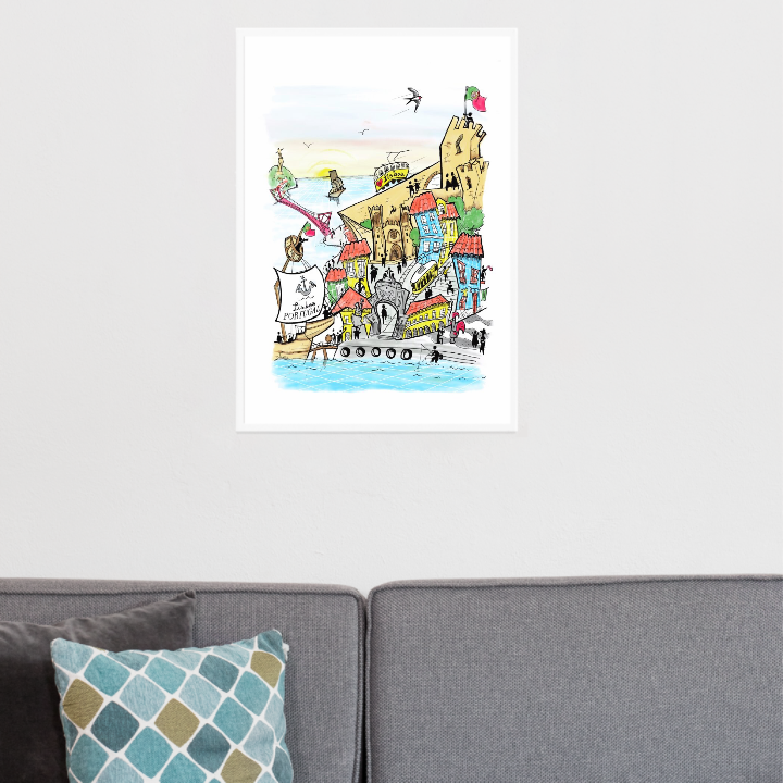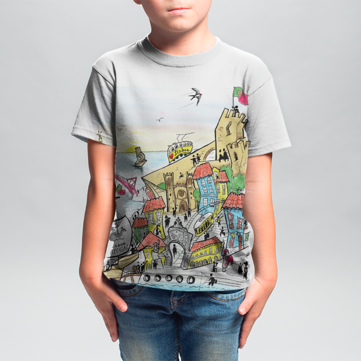Mergulhe numa Lisboa surreal onde casas coloridas se inclinam sobre colinas, entre escadarias, funiculares e elétricos que percorrem a cidade até um antigo porto que parece contemplar o seu próprio reflexo.