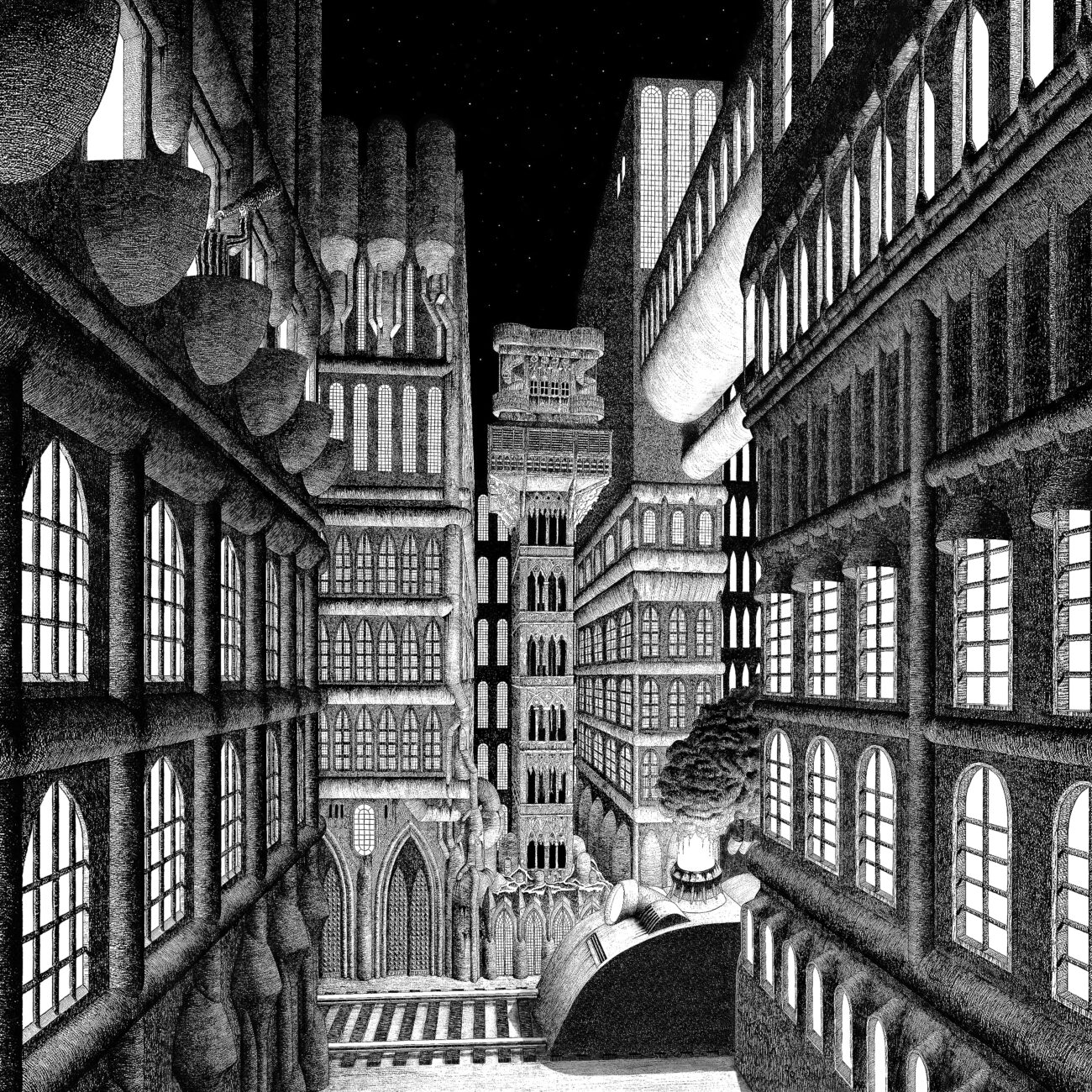 No centro da composição de O Astrónomo, está o Elevador de Santa Justa, uma estrutura metálica do esquecido século XX. Cuspindo fumo e fogo, uma enorme locomotiva desce a vistosa Rua do Ouro, de estilo neogótico. No canto superior esquerdo, numa varanda, um astrónomo viaja pelas estrelas com o seu telescópio.