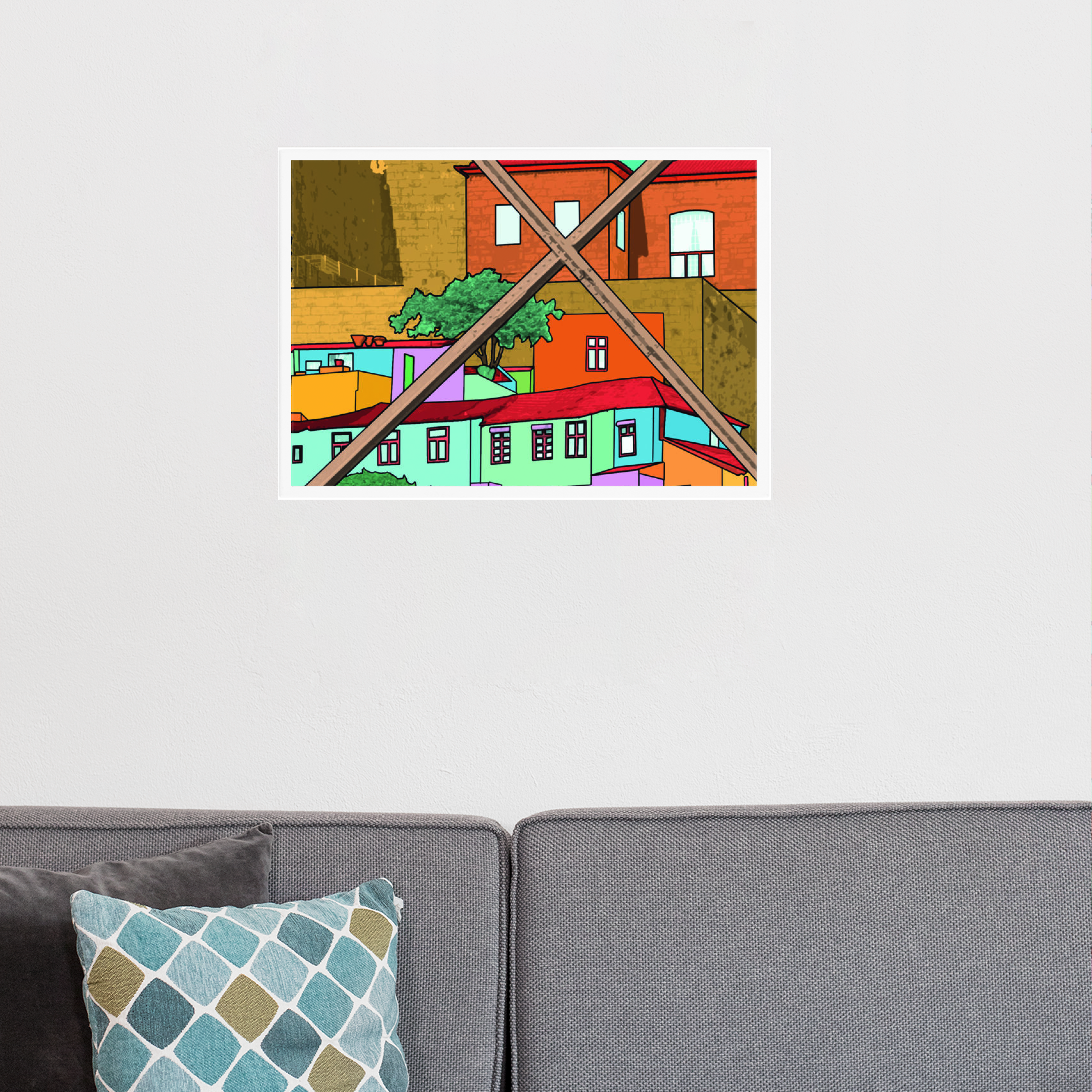 photography is the basic technique, the theme includes iconic elements of porto, with the application of digital processes to the original photographs with a POP aesthetic, d. luis bridge