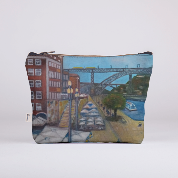 A beleza medieval da Ribeira do Porto contrasta ao fundo desta coleção com a Ponte Luis I, que conecta-se com a cidade de Vila Nova de Gaia sobre o rio Douro. Com cores vibrantes esta coleção retrata a energia deste icónico lugar.