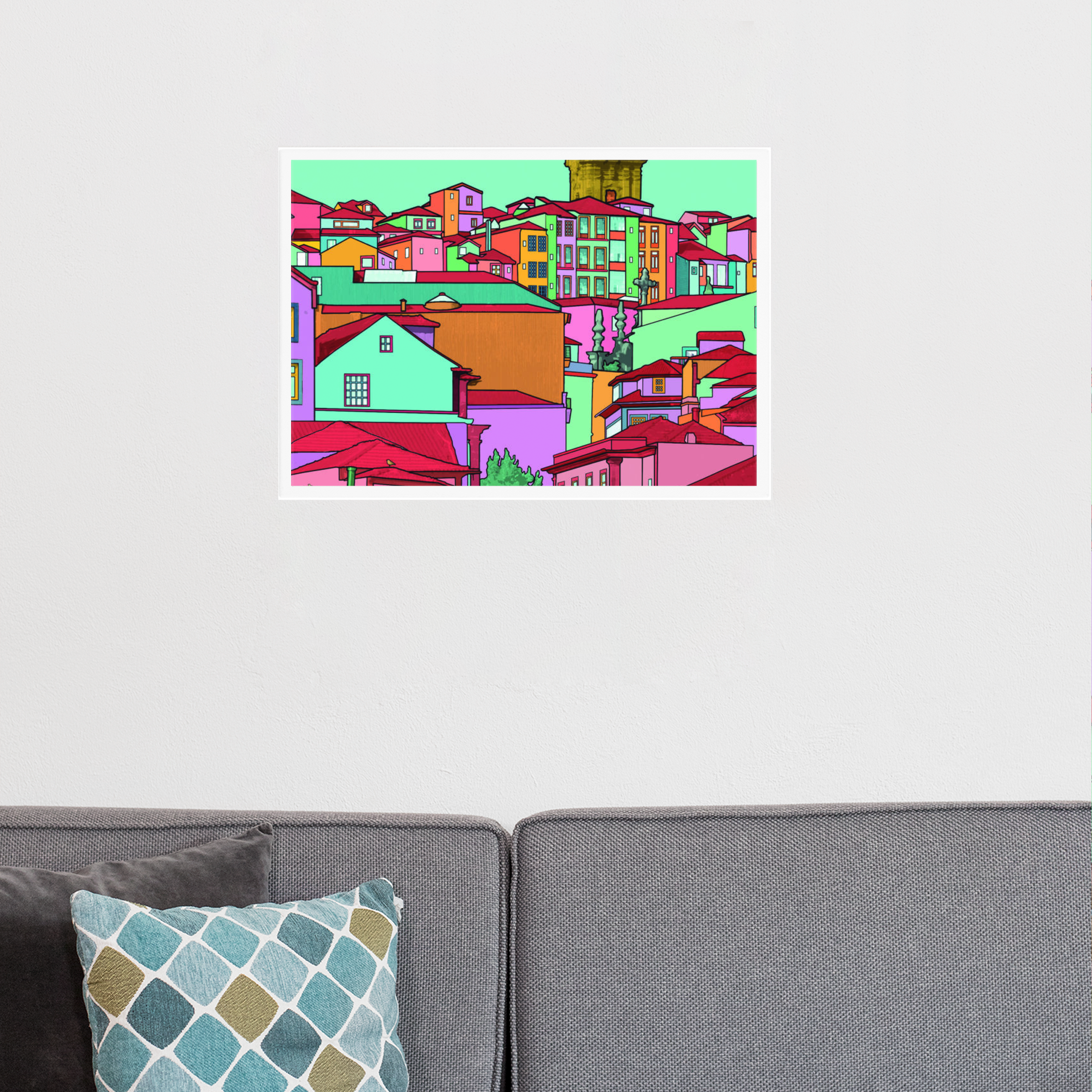 A fotografia é a técnica base, o tema inclui elementos icónicos do porto, com aplicação de processos digitais às fotografias originais com uma estética POP, fotografia da ribeira do porto Photography is the basic technique, the theme includes iconic elements of Porto, with the application of digital processes to the original photographs with a POP aesthetic, Porto riverside photography