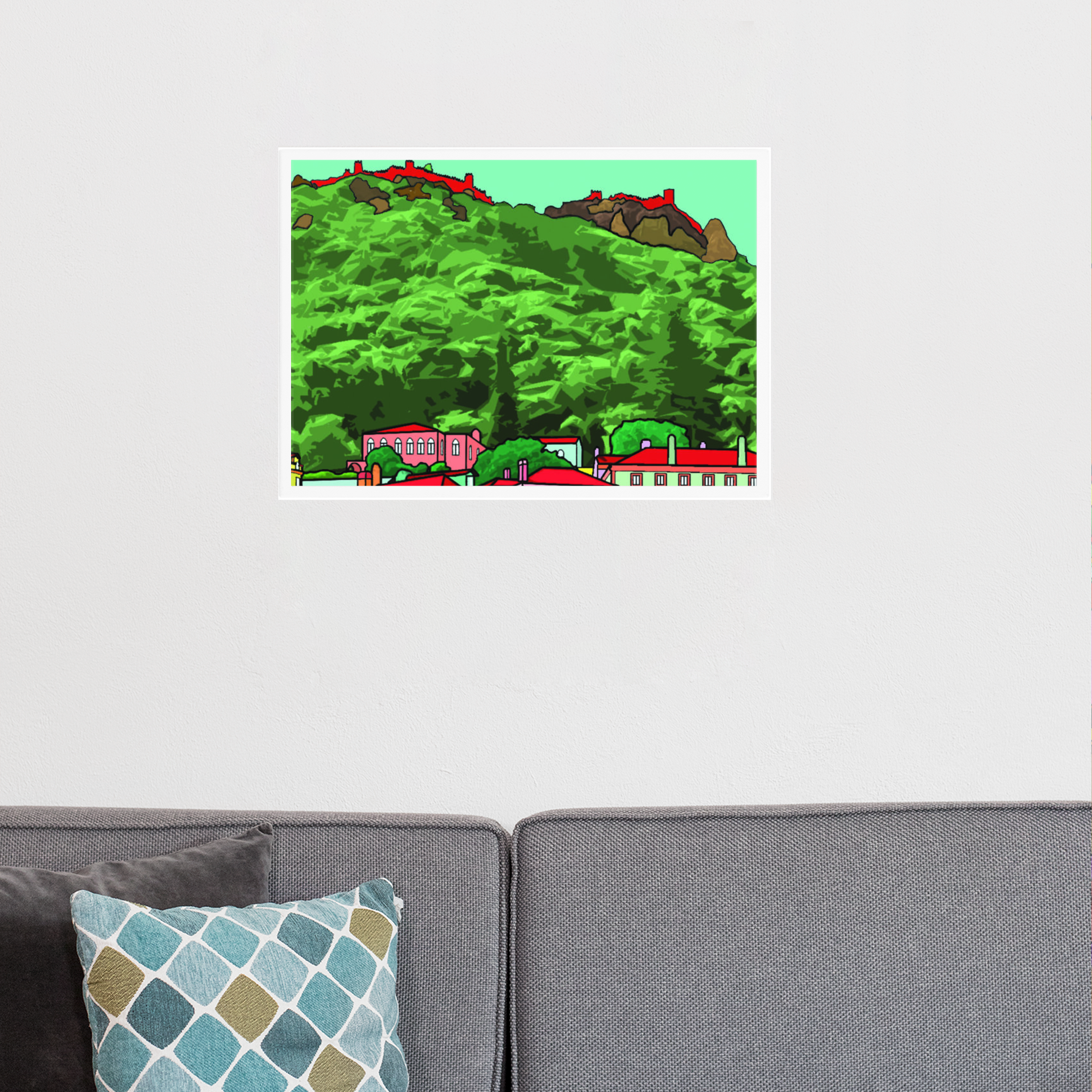A fotografia é a técnica base, o tema inclui elementos icónicos de sintra, com aplicação de processos digitais às fotografias originais com uma estética POP, vista do centro da vila de sintra Photography is the basic technique, the theme includes iconic elements of sintra, with the application of digital processes to the original photographs with a POP aesthetic, view of the center of the sintra village