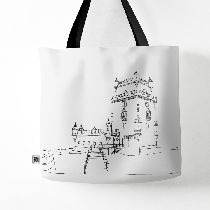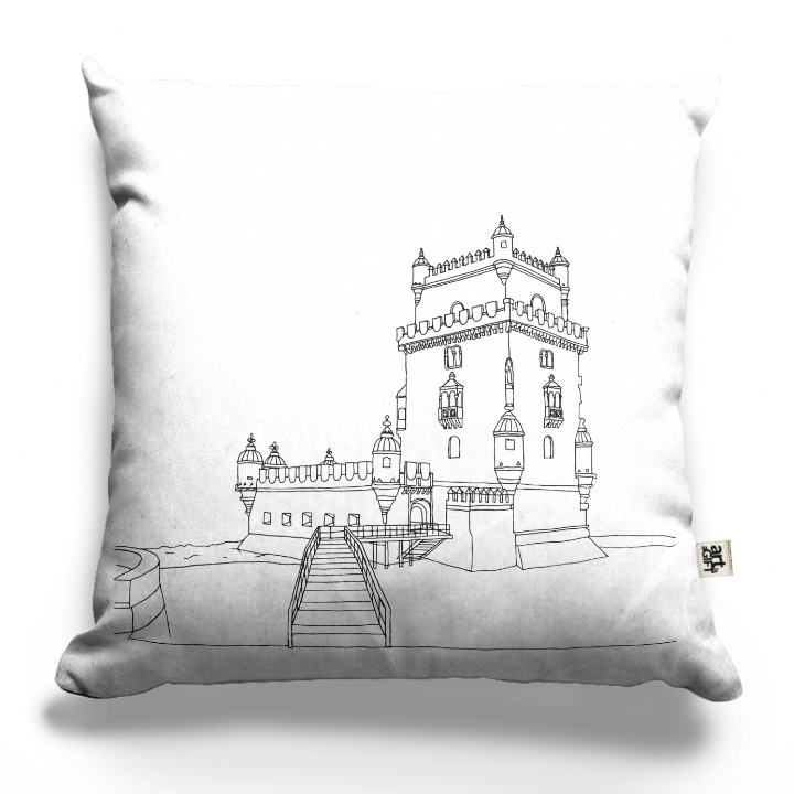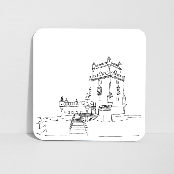 Black and white illustration of Torre de Belém.