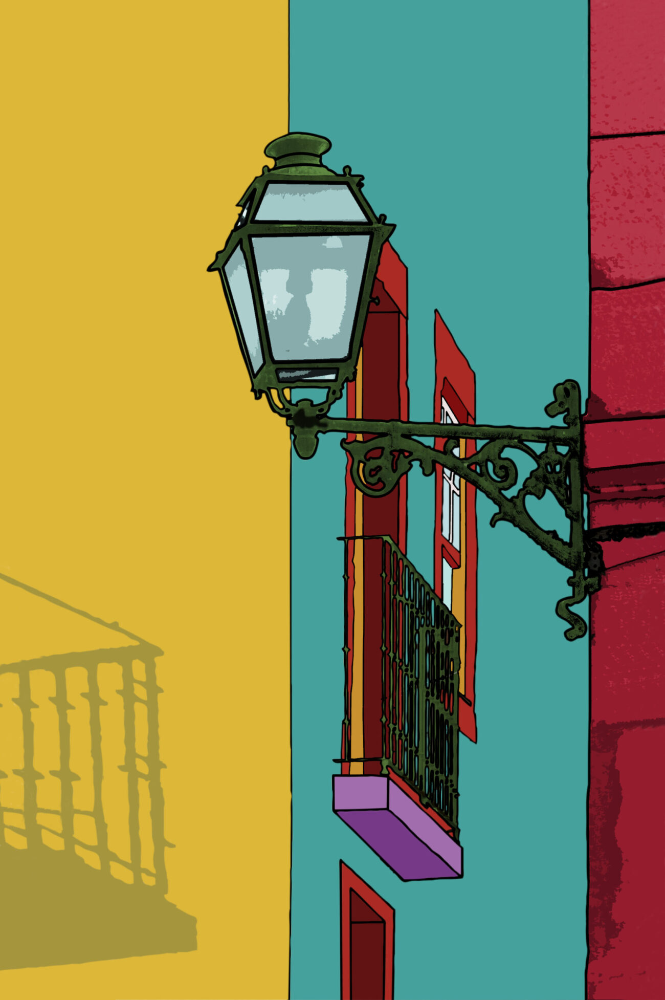 A fotografia é a técnica base, o tema inclui elementos icónicos de lisboa, com aplicação de processos digitais às fotografias originais com uma estética POP, candeeiro em alfama